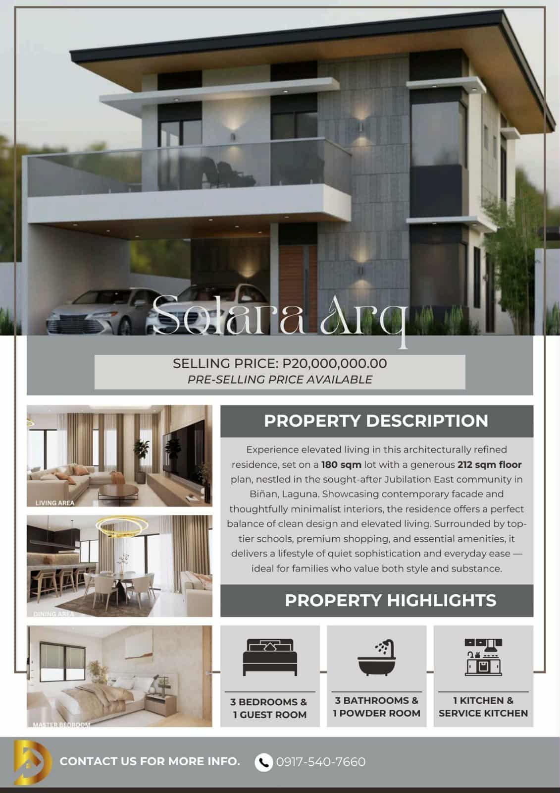 A 180sqm lot with generous 212sqm floor plan, Showcasing contemporary facade and thoughtfully minimalist interiors the residence offers a perfect balance of clean design and elevated living. Surrounded by toptier schools, premium shopping and essential amenities, it delivers a lifestyle of quiet sophistication and everyday ease ideal for families who value both style and substance.