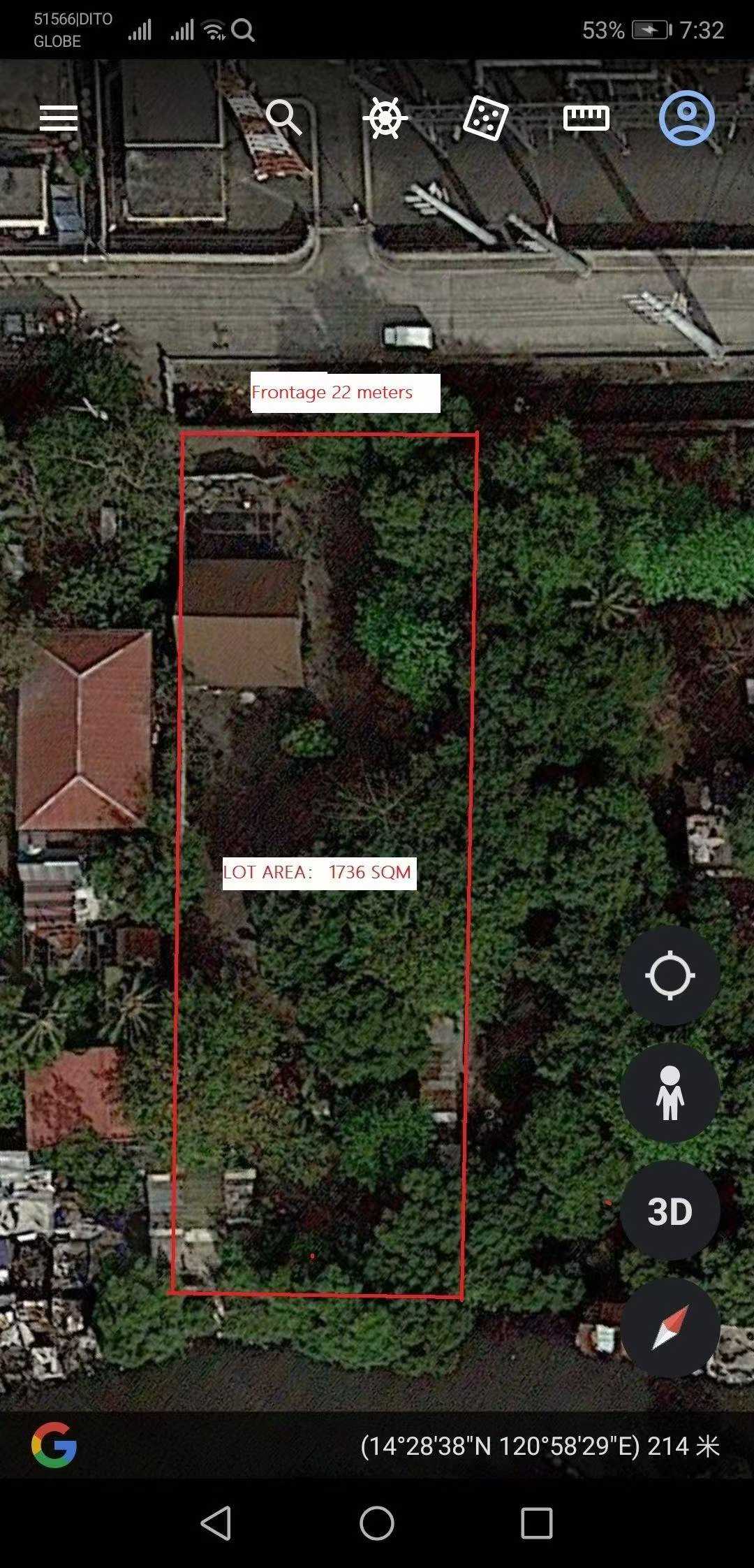The shape of property is rectangle, 22 meters frontage; With cement wall, 2 storey building and 1 deep well.